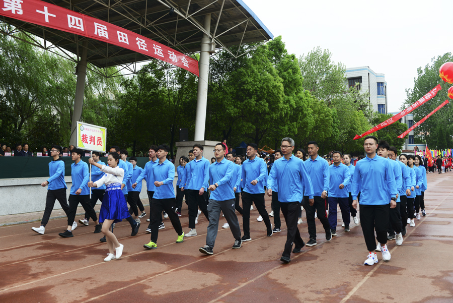 本网讯(文/体教部 钟俊)4月19日至20日,我校第十四届田径运动会在主校区田径运动场隆重举行。开幕式于4月19日上午8:30举行。校长方家选,党委副书记逵应坤,纪委书记张国良,副校长张胜海、郭万周、范真,校工会主席田端,相关处(室)、系(部、院)的领导以及裁判员、运动员、师生代表出席了开幕式。开幕式由本届田径运动会组委会主任范真同志主持。
