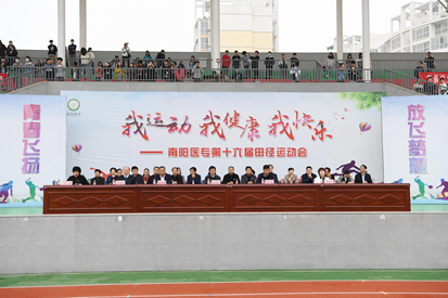 4月26日至27日,我校第十六届田径运动会在仲景西区新田径运动场隆重举行。开幕式于4月26日上午8:30举行,党委副书记逵应坤,校党委委员、副校长张国良、张胜海、郭万周、范真,纪委书记刘金云,相关处(室)、系(部、院)的领导,以及裁判员、运动员、师生代表出席了开幕式。开幕式由本届运动会组委会主任范真同志主持。