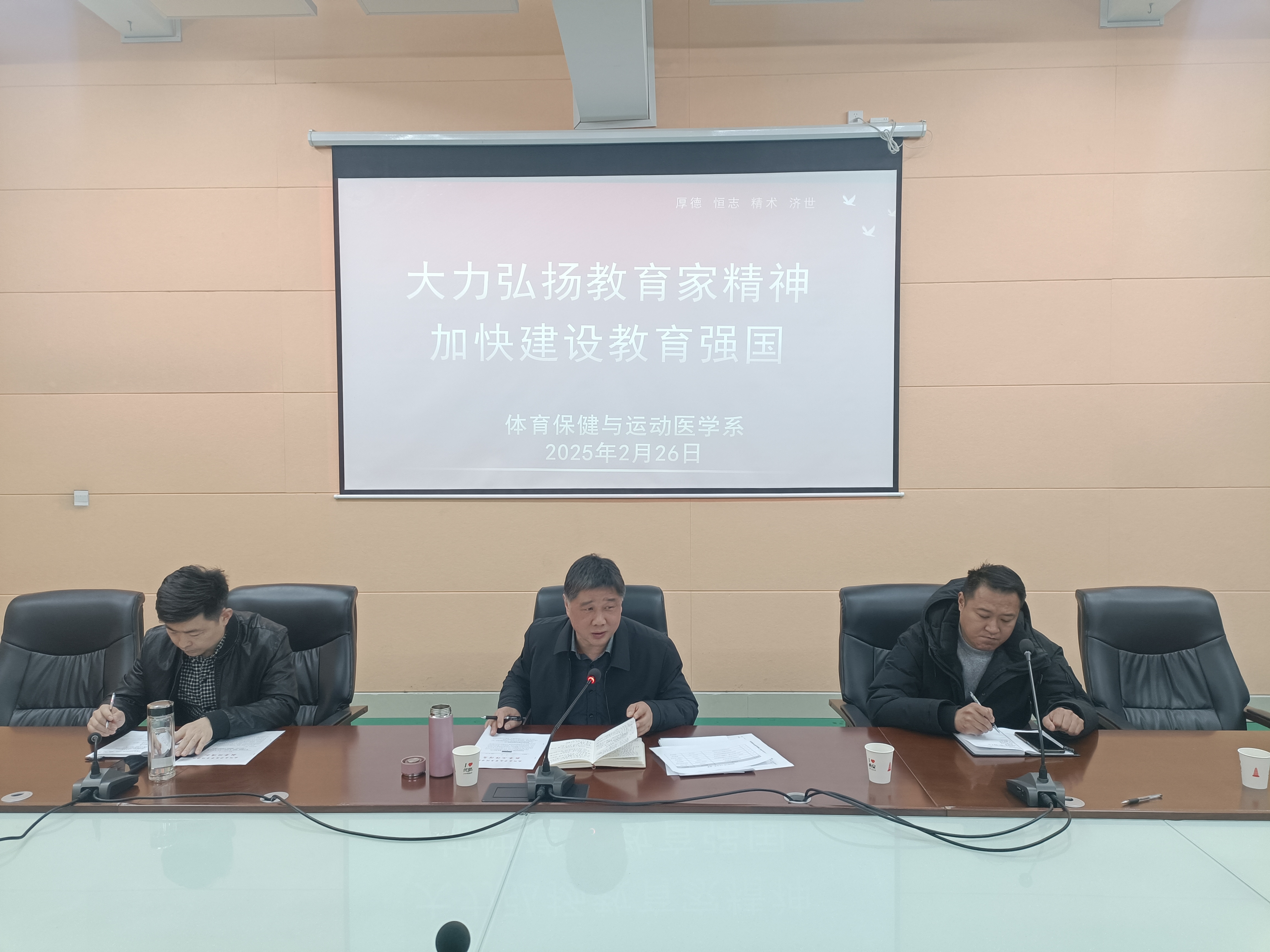 上午,全系教职工通过观看线上宣讲的形式进行学习。下午,以线下会议的形式进行深入学习,系主任李朝强调:“教育家精神是新时代教师的灵魂,我们要以榜样为镜,将心有大我。作为一所医学类专科院校的特色系部,太阳网集团tcy8722始终致力于体医融合教育。教师需以教育家精神为引领,培养兼具医学素养和体育技能的应用型人才。”