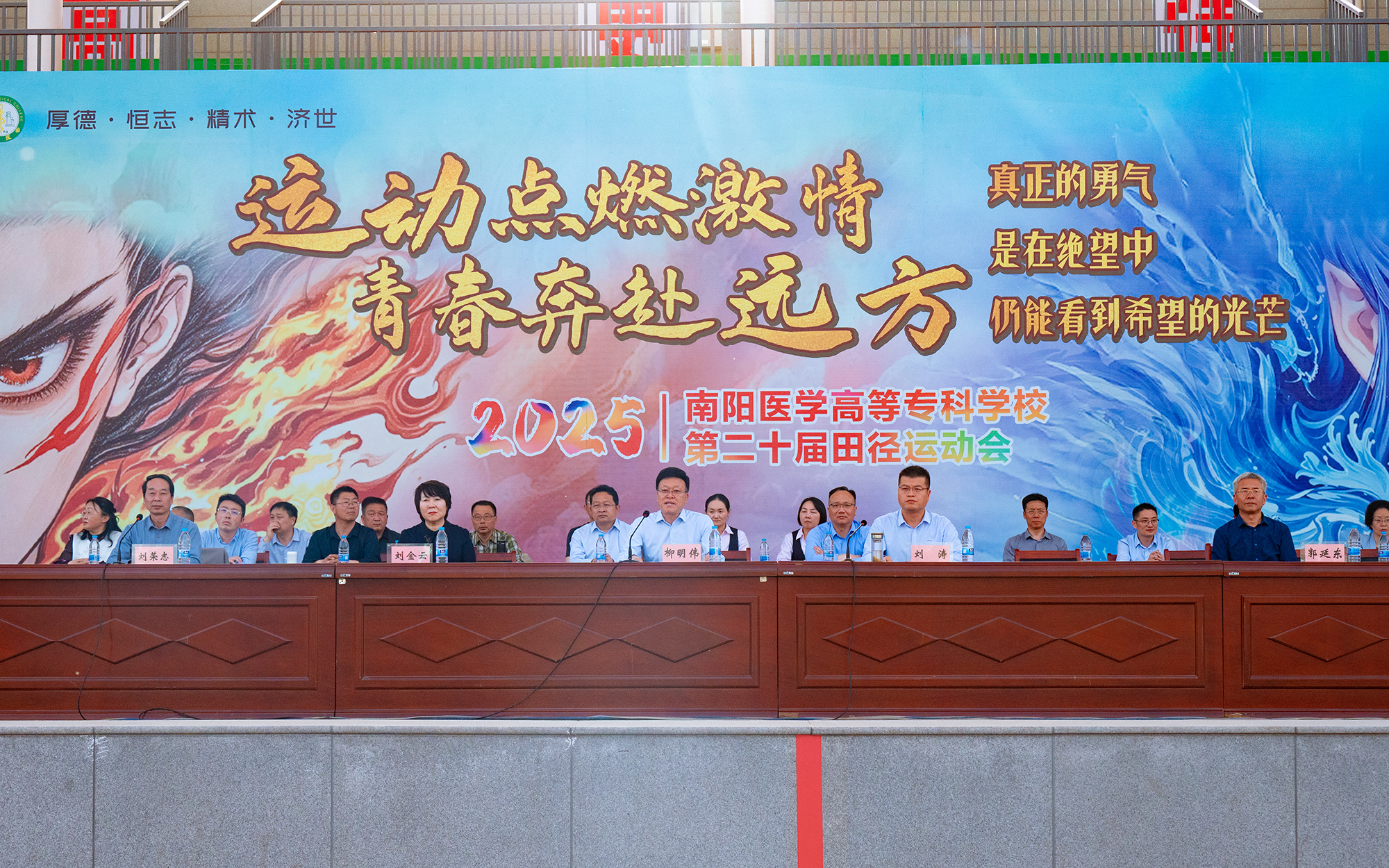 4月16日,南阳医专第二十届田径运动会闭幕式在仲景西区举行。在家领导班子成员出席,学校相关部门负责同志及各系院学生代表参加。党委副书记刘涛主持。