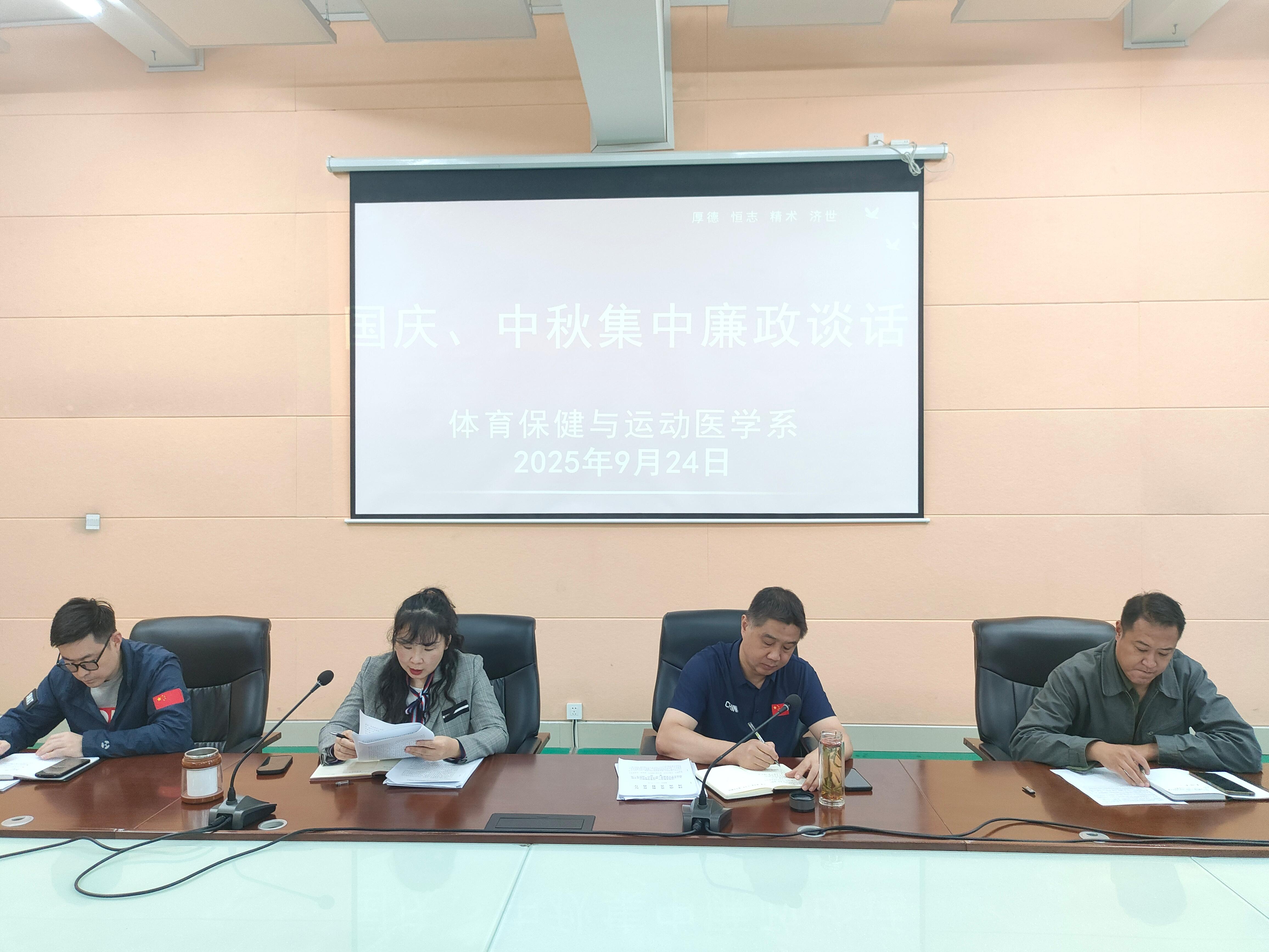 9月24日下午,我系召开国庆中秋“双节”集体廉政谈话会。系党总支书记张端主持会议,并对全体党员干部、教职工进行廉政谈话。
