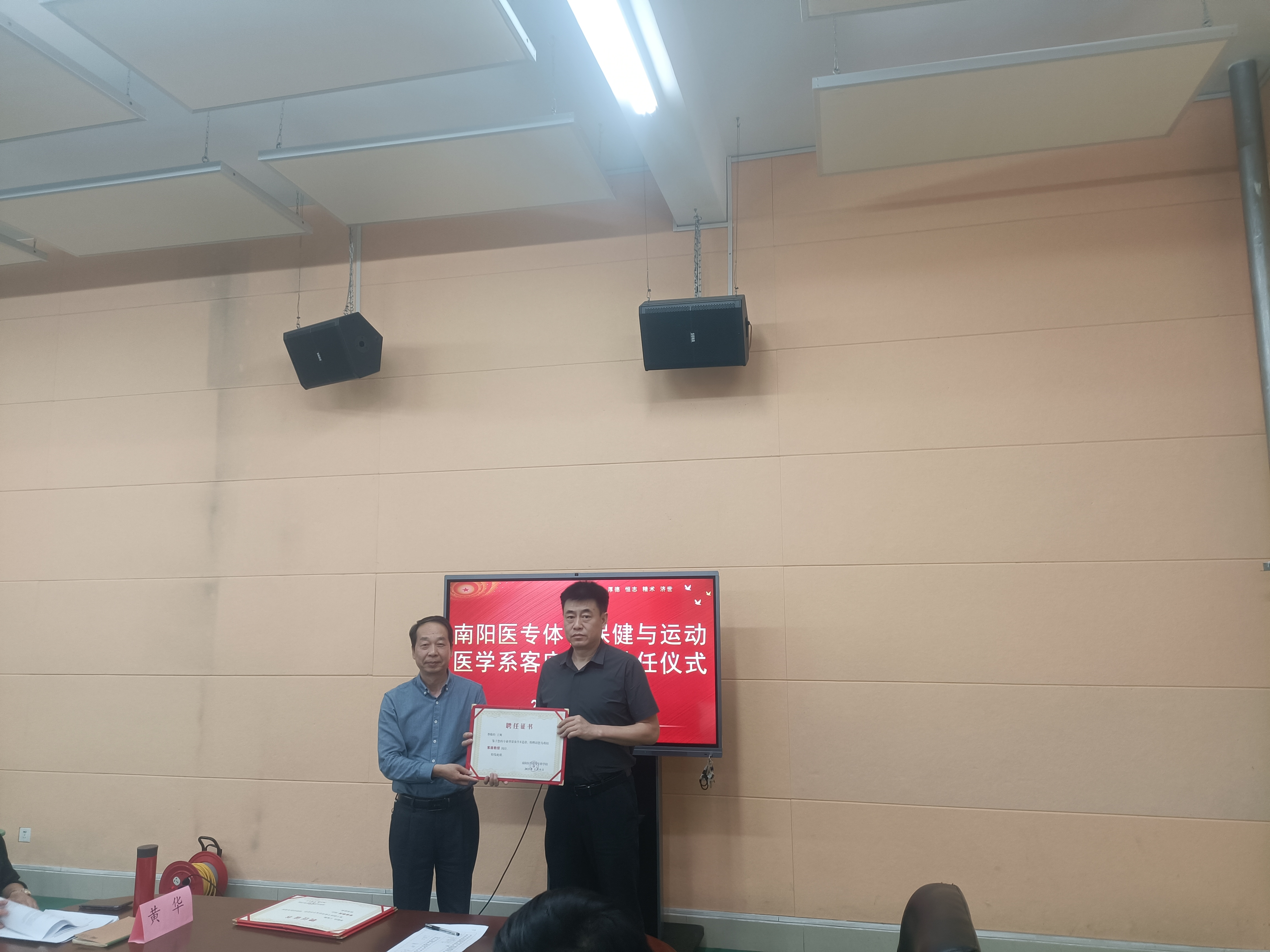刘荣志副校长为四位校外专家颁发了客座教授聘书,并对专业建设提出了三点指导意见:一要深化产教融合,强化实践教学;二要突出专业特色,服务经济发展;三要加强师资队伍建设,提升人才培养质量。