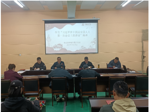 2023年3月15日,体育教学部直属党支部召开学习会议,学习习近平在十四届全国人大一次会议上重要讲话。钟俊书记主持会议,全体教师参加学习会议。