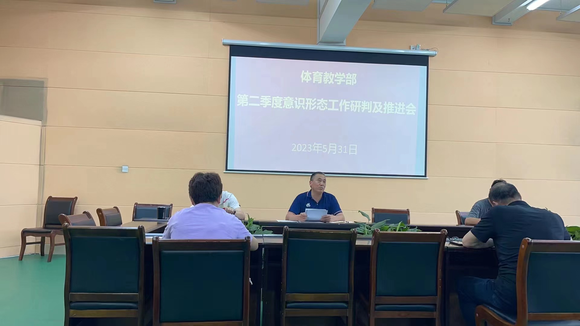 为认真贯彻落实中央、省委、省委教育工委及学校党委关于意识形态工作的决策部署,扎实推进2023年体育教学部意识形态工作责任制的落实,分析研判当前我部意识形态领域工作,部署下一阶段重点任务,6月1日下午,体育教学部2023年第二季度意识形态工作研判会在体育馆会议室召开。体育教学部书记钟俊、主任李朝及全体教职工参加了会议。会议由体教部副书记习茵主持。