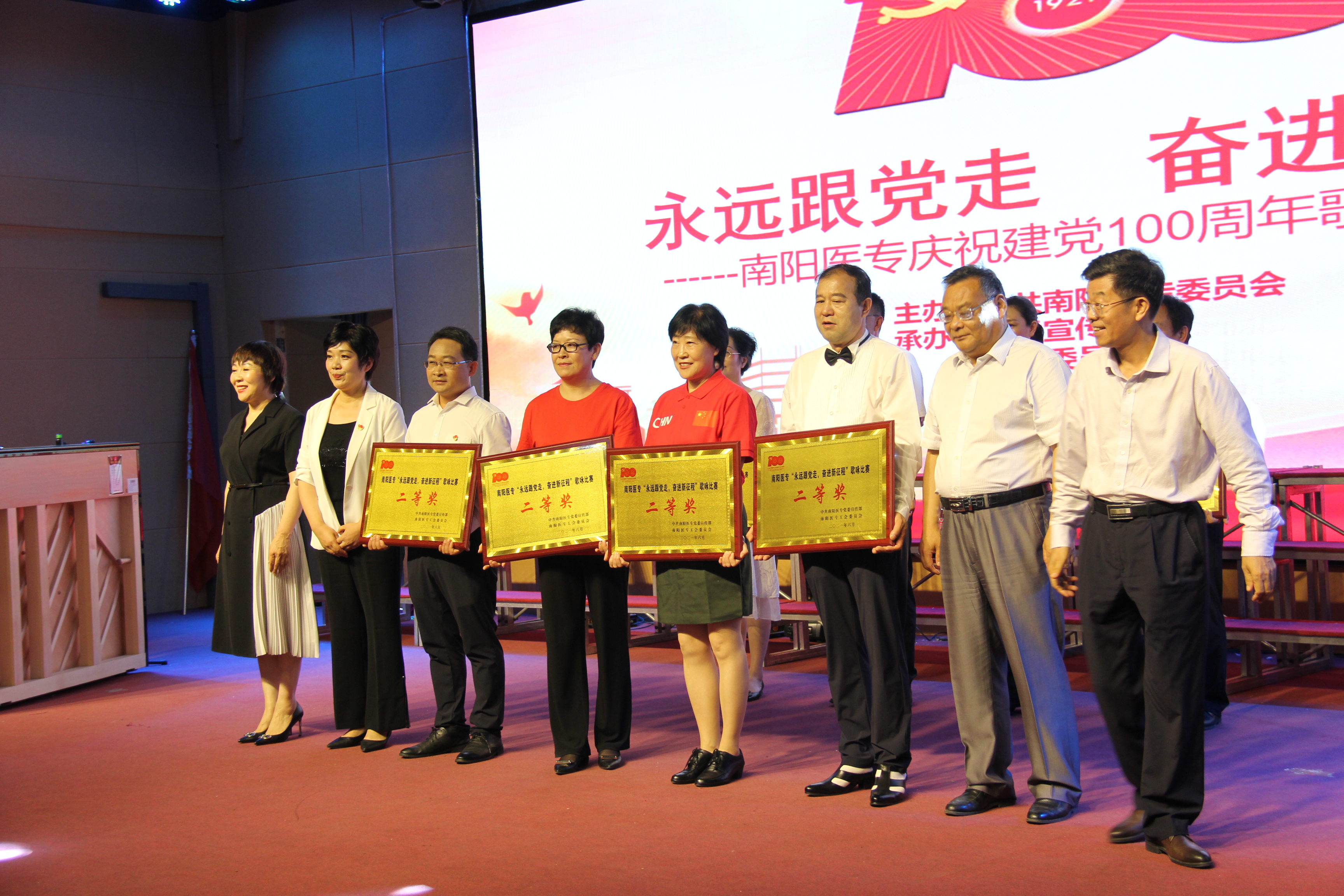 2021年6月16日下午,南阳医专“永远跟党走,奋进新征程”歌咏比赛,在仲景西区礼堂隆重举行,全校12支代表队参加,体育教学部直属党支部与政治教学部直属党支部联合参演的《当祖国召唤的时候》荣获二等奖。在比赛筹备阶段,支部召开专门支委会研究有关参赛事宜,统一思想,提高认识,把此次活动作为党史学习教育活动的一个重要内容来抓,要求体育教学部全体教职工参加。在赛前排练期间,支部党员干部带领全体教职工在完成繁重的体育教学任务和业余队训练任务前提下,克服困难,牺牲休息时间坚持排练,最终取得了优异成绩。通过此次比赛,达到了重温党的光辉历程,讴歌党的丰功伟绩,宣传党的辉煌成就的目的,进一步激发了体育教学部教职工忠诚党、听党话、跟党走的爱国主义情怀,增进了支部的凝聚力和向心力。