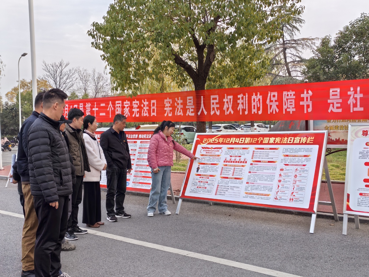 12月4日即国家宪法日上午,全体总支、支部委员参观了学校宪法宣传周主题展览。系党总支书记张端带领大家观看、阅读展板,学习宪法核心要义、法治宣传教育法、防范电信网络诈骗等知识。大家边走边学边议,收获颇丰。